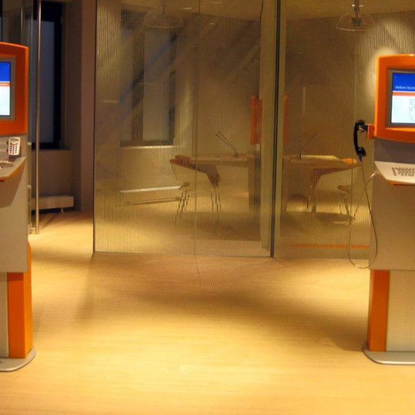 Administrator przygotował pętlę reklamową wyświetlającą informacje o oferowanych produktach banku. Oprócz samych reklam, wyświetlany jest kod QR, podany numer SMS lub pojawia się zaproszenie do włączenia odbioru Bluetooth. Bank otrzymuje szansę nawiązania szybkiej interakcji z klientem.